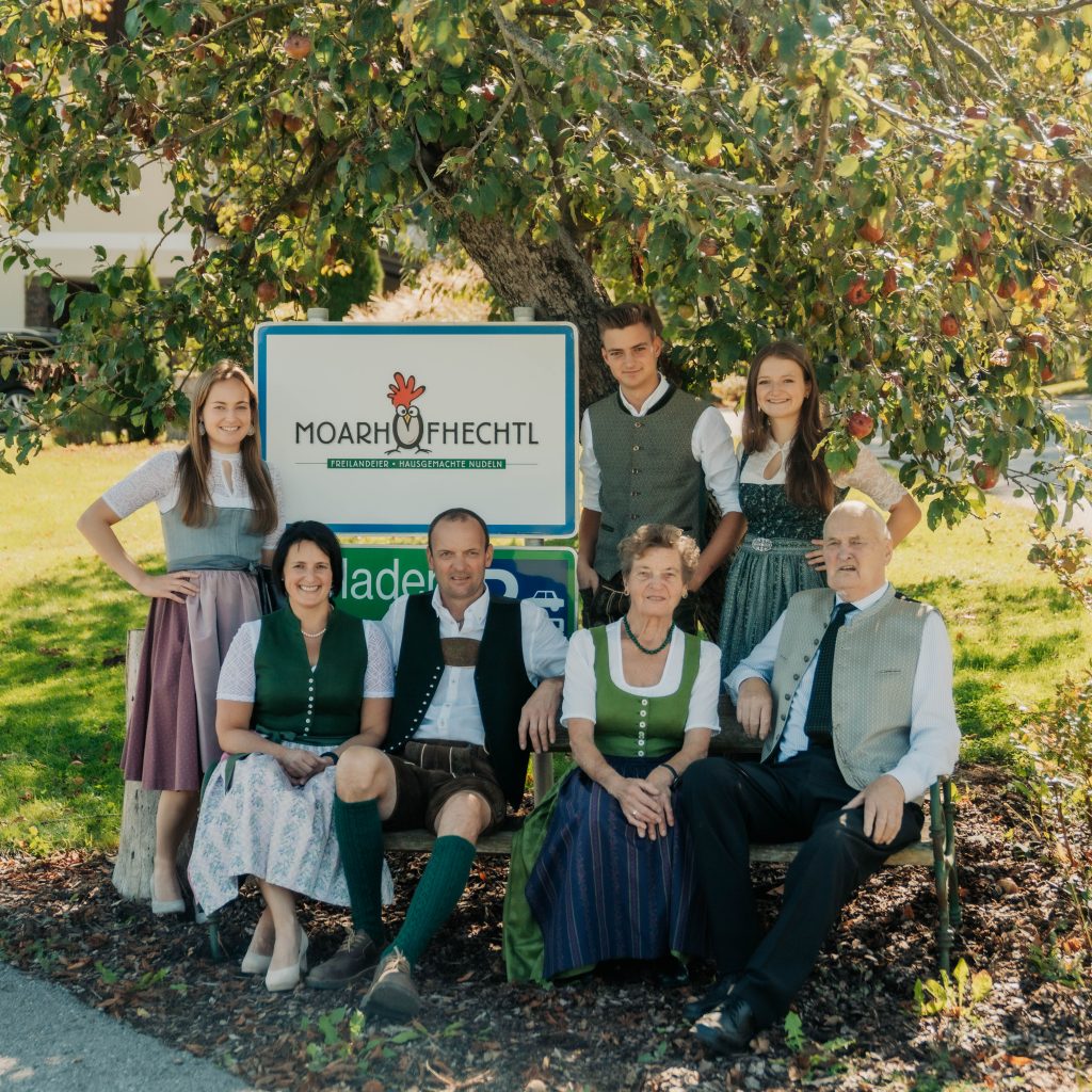 Seit 1793 befindet sich das malerische Anwesen inmitten der grünen Hügel des Almenlandes im Besitz unserer Familie. Wir, Petra und Robert, mit unseren Kindern Marlene und Mathias mit Linda, sind die 7. Generation die den Moarhofhechtl Bauernhof mit fünf Betriebssparten bewirtschaften.